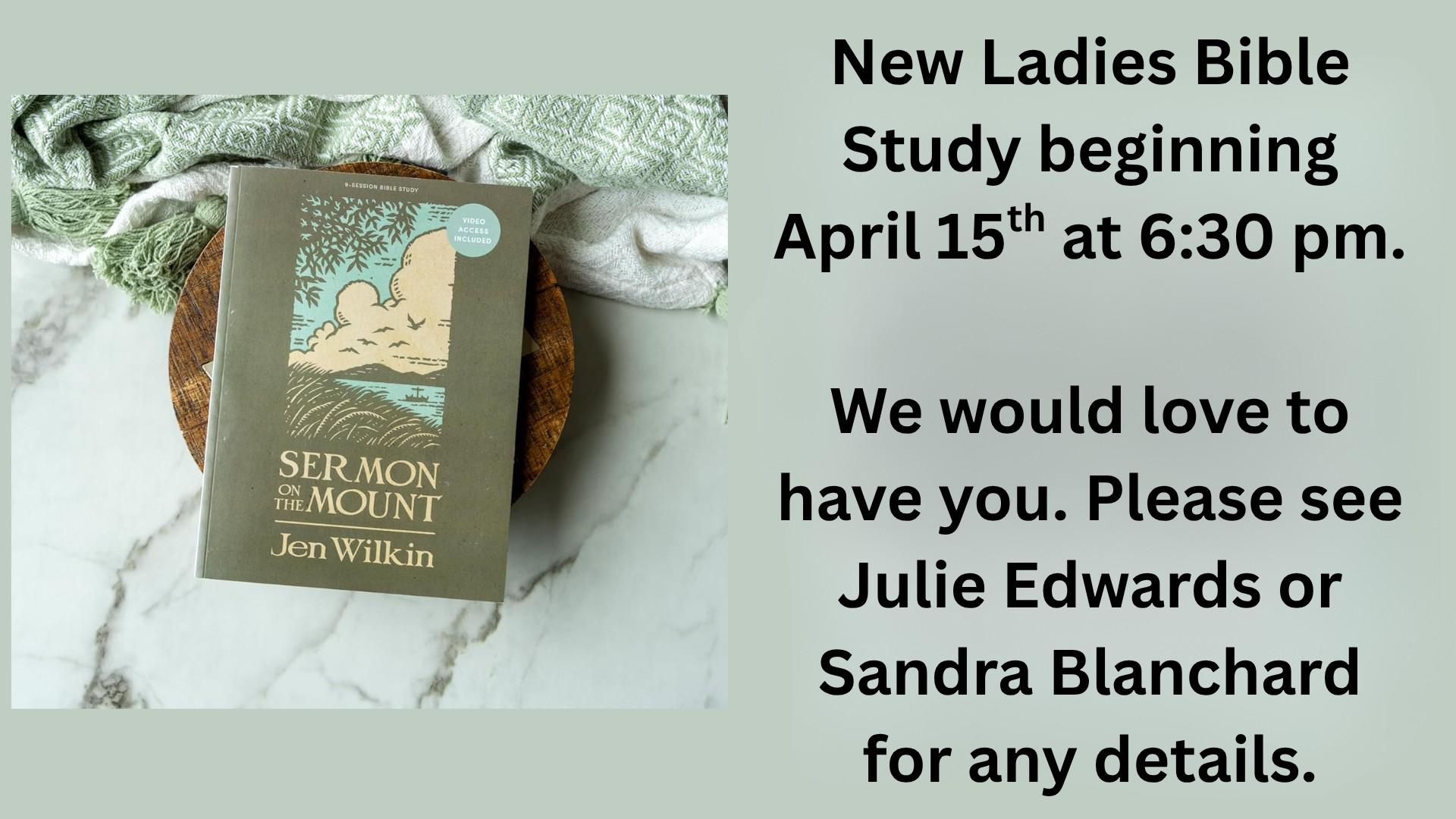 Ladies' Bible Study 6:30 PM